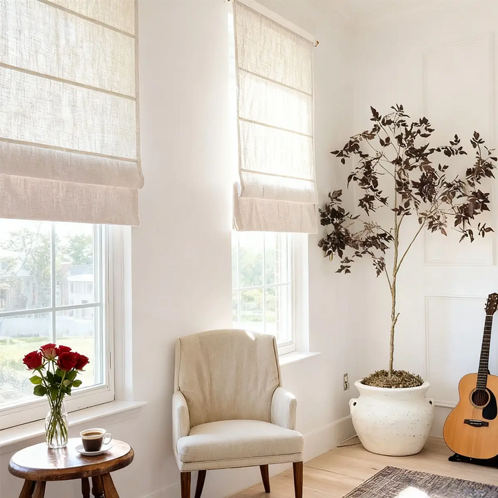 Roman shades offer a clean, tailored look that complements both traditional and modern interiors. Their soft folds add a touch of sophistication to any space.